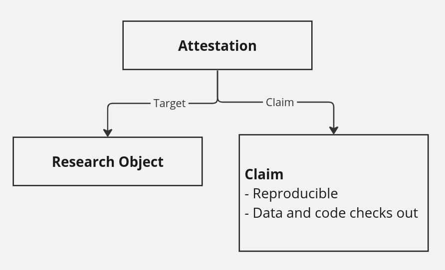 <figure><img src="https://173088917-files.gitbook.io/~/files/v0/b/gitbook-x-prod.appspot.com/o/spaces%2FuLEzUfpuZ1EbnvdhdDi9%2Fuploads%2Fgit-blob-409019c62a75b72df595f5583e502e241efcc1d6%2Fimage.png?alt=media" alt=""><figcaption><p>The abstract representation of an attestation being granted to a research object, awarding it a badge of reproducibility.</p></figcaption></figure>