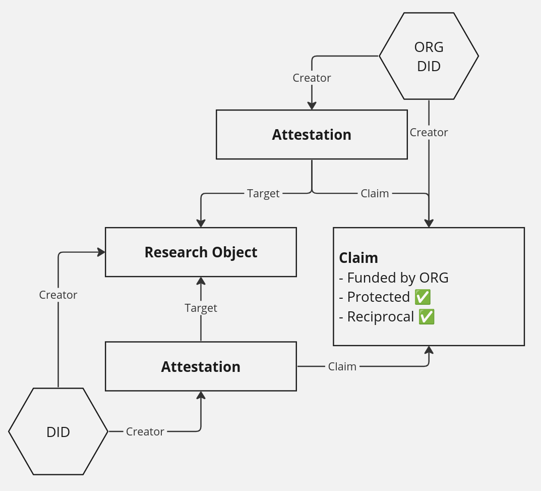 These attestations build credibility for actors in the system, not only for publishing original research but for any number of other contributions to the maintenance of the scientific record. This is a way to get verifiable certifications for contributions, which can be used in the real world for securing research funding, qualifying for programs, or securing positions based on verifiable merit.
